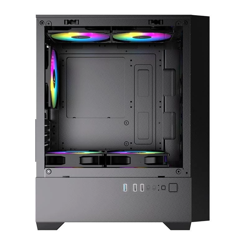 Compatível com placas-mãe Micro-ATX e Mini-ITX, o gabinete permite montar builds robustas e personalizadas. Seu acabamento escuro e linhas modernas valorizam qualquer setup.