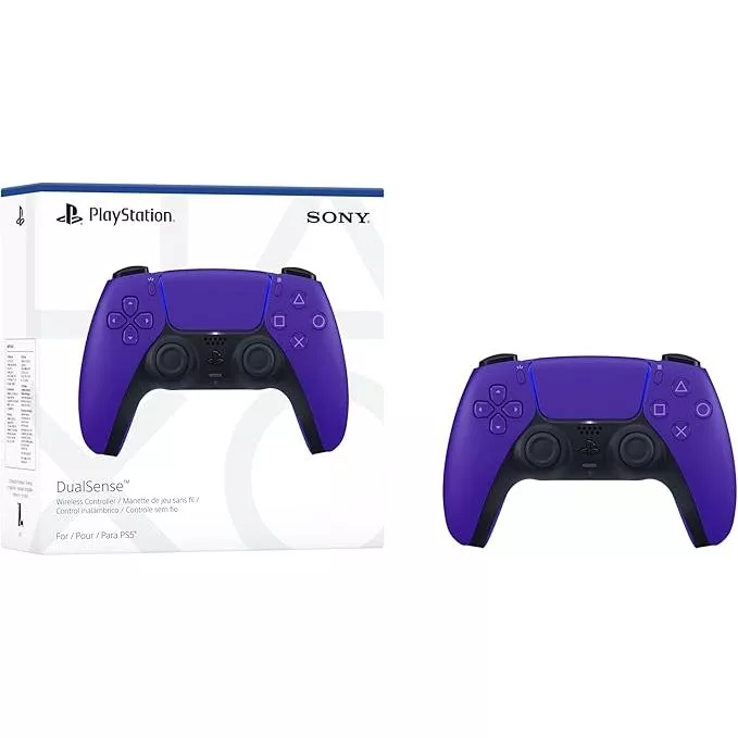 Controle sem fio DualSense Galactic Purple para PS5 proporciona uma experiência de jogos imersiva com resposta tátil, efeitos de gatilho adaptáveis e um microfone embutido, em um design icônico e confortável.